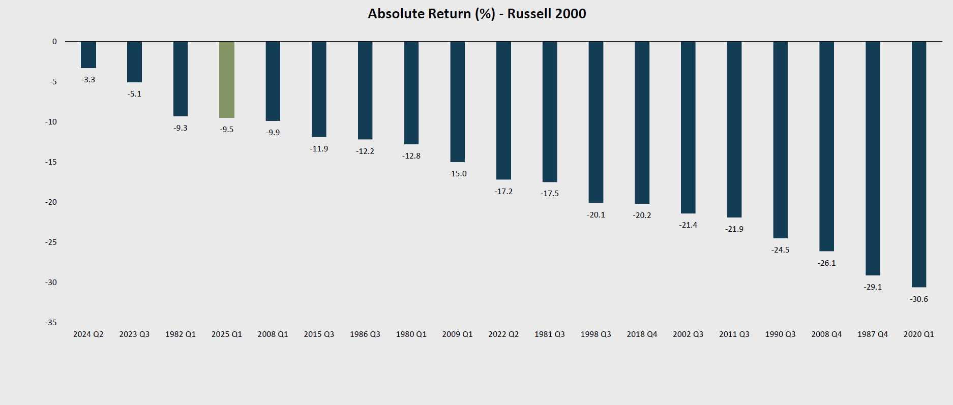 The volatility observed throughout 2024, persisted into the first quarter of 2025. The Russell 2500 Index declined -7.50% during the quarter, following a strong 2024 with the index returning 11.99%. After a moderately positive start to the quarter, February and March were a more challenging market environment due to uncertainty surrounding the precise parameters and implementation of the new administration’s policies, geopolitical tensions and a higher for longer rate environment. Continued economic growth, a stable labor market and firmer inflation data kept the Federal Reserve (Fed) on the more hawkish course they took in December. Chairman Powell held rates steady at the March FOMC meeting and indicated the Fed will maintain a more measured approach going forward, updating their economic projections and forecasts to two rate cuts in 2025.