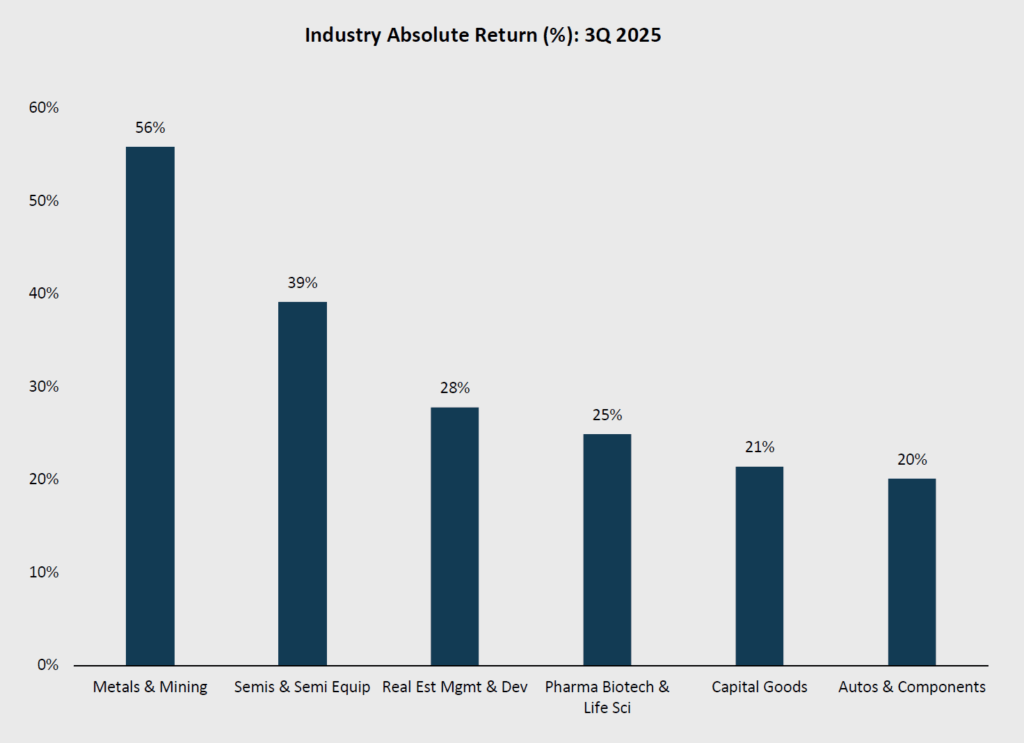 Two of 29 Industries Contributed 21% of the 3Q25 Return