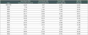 | Value Equity WM Composite (pure gross) | 4.33 | 10.28 | 5.76 | 16.22 | 12.22 | 12.70 |
